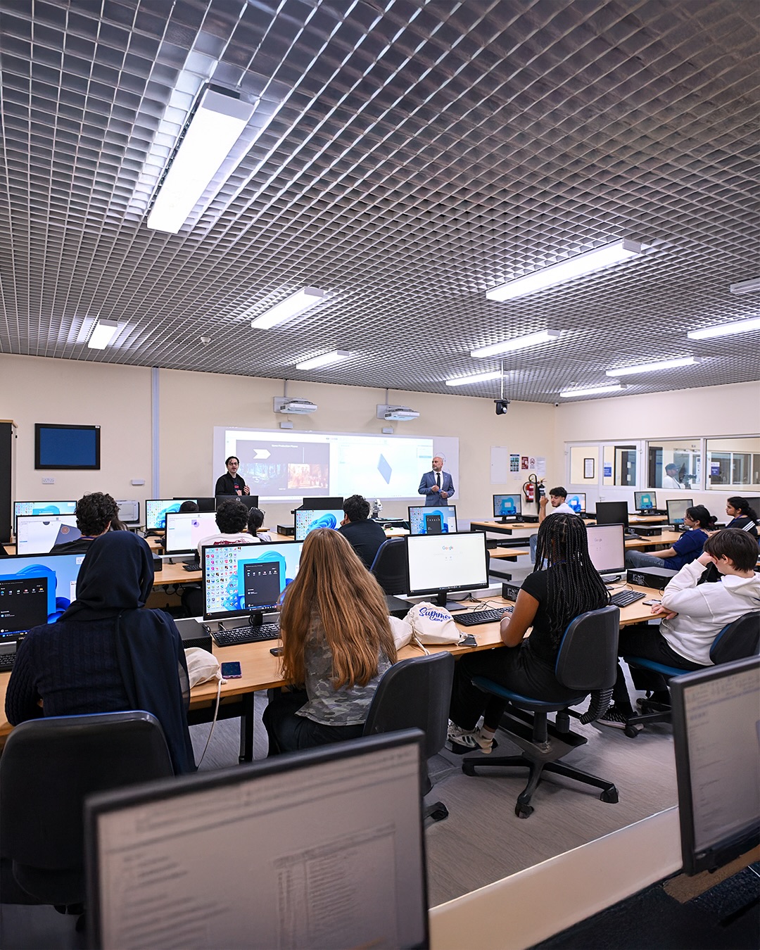 The American University in Dubai bridges creativity and technology through modern computer labs equipped with licensed software for 2D/3D modeling and 4D animation. Spacious studios house ambitious projects, while the model-making and furniture workshop receives regular equipment updates to support experimentation. A specialized lighting lab allows students to explore how light and shadow transform space, and the design center connects academic work with real commissions from architectural firms across the region.